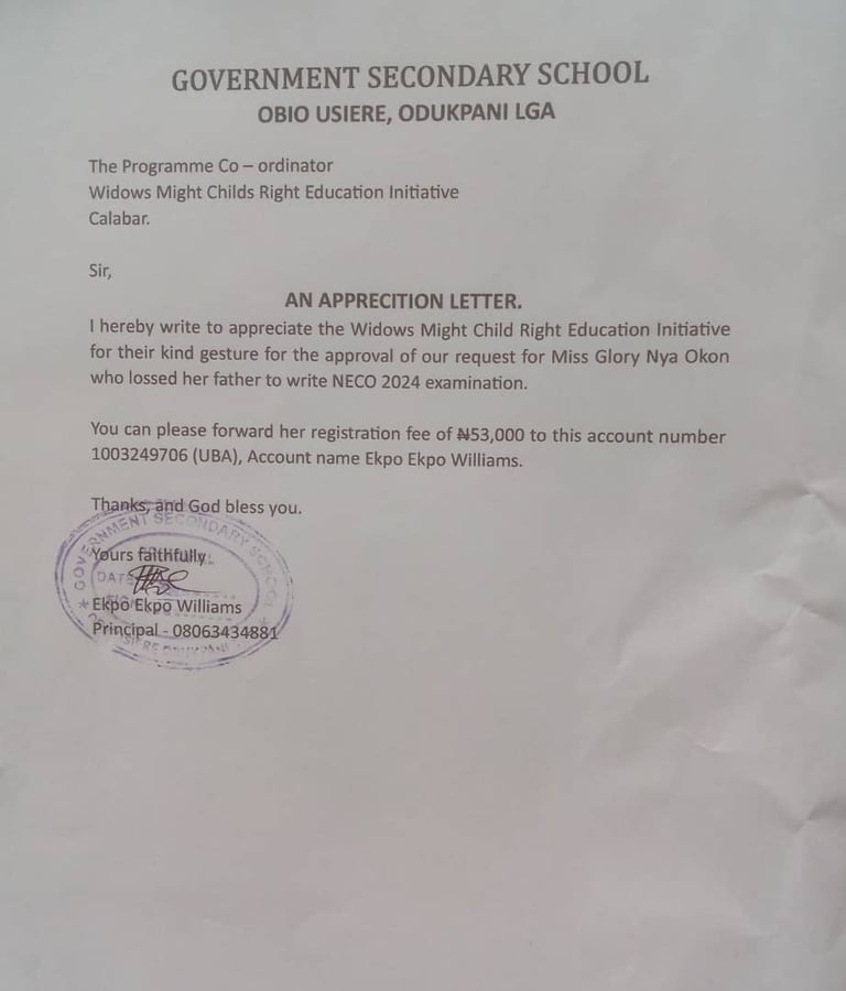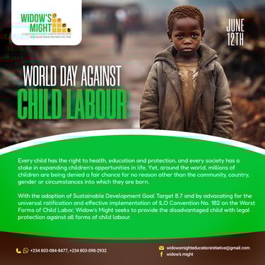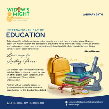 Widow’s Might Child Right Education Initiative is a registered NGO in Nigeria (CAC Reg. No. CAC/IT/NO 153031 & EFCC/SCUML #331404034)